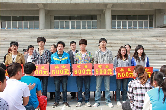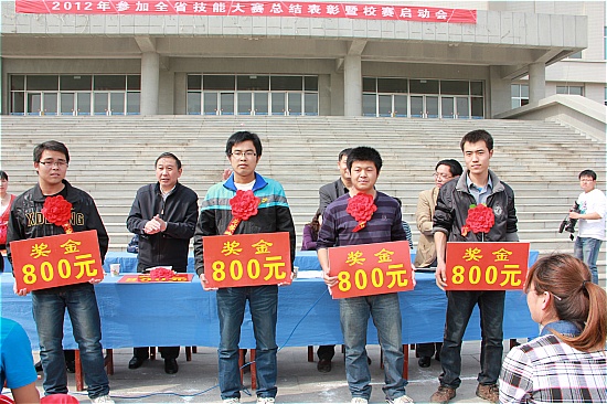 4月20日,我院在教學(xué)樓前廣場舉行了2012年參加全省技能大賽總結(jié)表彰暨校賽啟動會,對2012年參加全省技能大賽獲獎的學(xué)生、指導(dǎo)教師、組織處室、參與處室分別予以表彰獎勵。 副院長雷立斌首先對大賽工作進行總結(jié)并宣讀《渭南技師學(xué)院關(guān)于舉辦2012年技能競賽的通知》,紀(jì)檢書記劉勇明宣讀《陜西省渭南工業(yè)學(xué)校關(guān)于參加2012年全省技能大賽獲獎個人及部門獎勵表彰決定》,學(xué)院領(lǐng)導(dǎo)分別對獲獎的學(xué)生、教練團隊、部門進行頒獎。教師代表吳軍和學(xué)生代表何蒙恩發(fā)言。