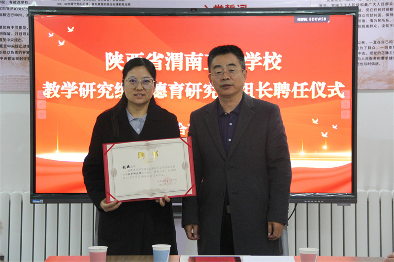 李瑞芳宣讀聘任文件,經(jīng)學(xué)校研究決定,聘任劉曉同志擔(dān)任教學(xué)研究組組長,李明同志擔(dān)任德育研究組組長。張君升為兩位新任組長頒發(fā)聘書。