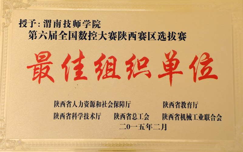 第六屆全國(guó)數(shù)控大賽陜西賽區(qū)選撥賽最佳組織單位