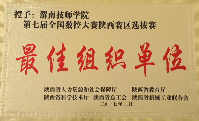 第七屆全國(guó)數(shù)控大賽陜西賽區(qū)選撥賽最佳組織單位