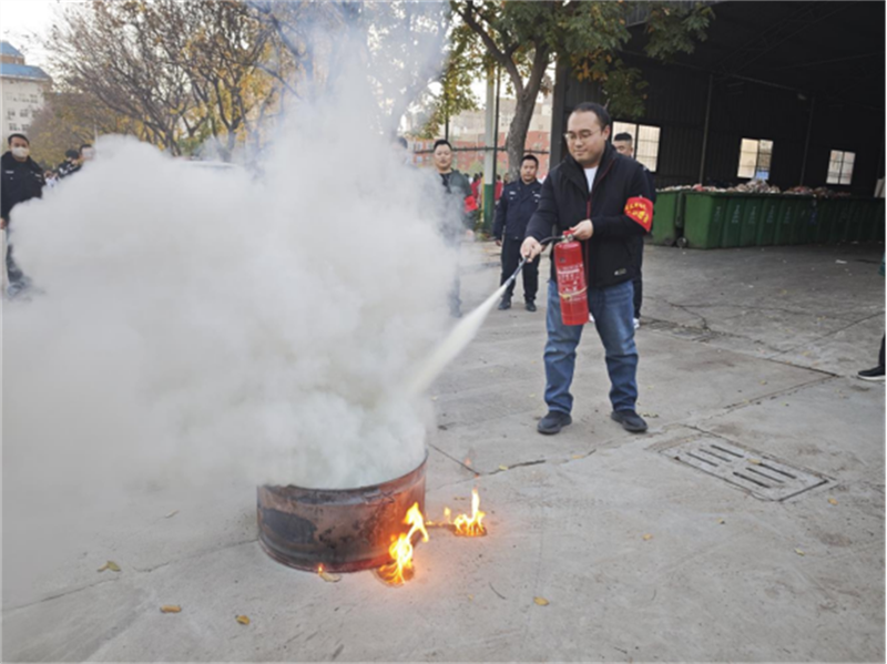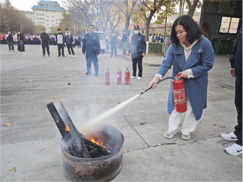 為進一步鞏固教學效果,現(xiàn)場設置模擬滅火場景,邀請學生及老師代表參與實操演練。在工作人員的指導下,參與人員嚴格遵循操作口訣,依次完成"提舉滅火器、拔除保險銷、對準火源根部、按壓手柄噴射"等規(guī)范動作,成功撲滅模擬火盆火焰,高效完成理論知識到實戰(zhàn)能力的轉化。